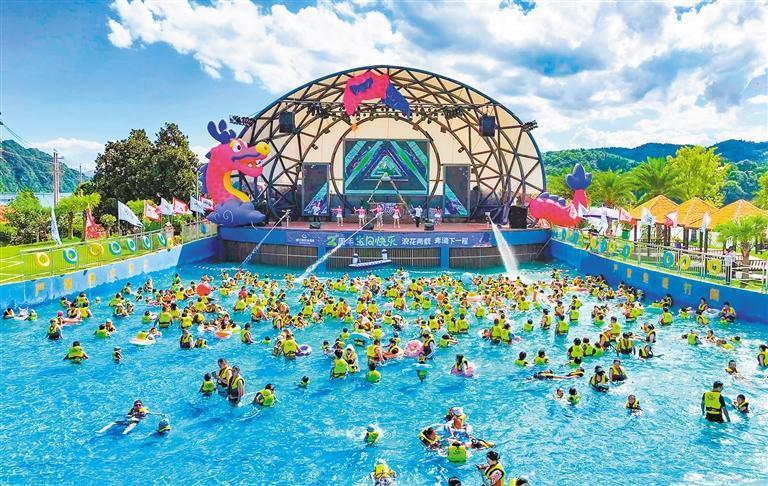 7月5日,清江奇幻水世界人頭攢動(dòng)。自2023年開(kāi)業(yè)以來(lái),該景點(diǎn)已成為當(dāng)?shù)叵募韭糜蔚臒衢T(mén)目的地。劉傳東攝(中經(jīng)視覺(jué))