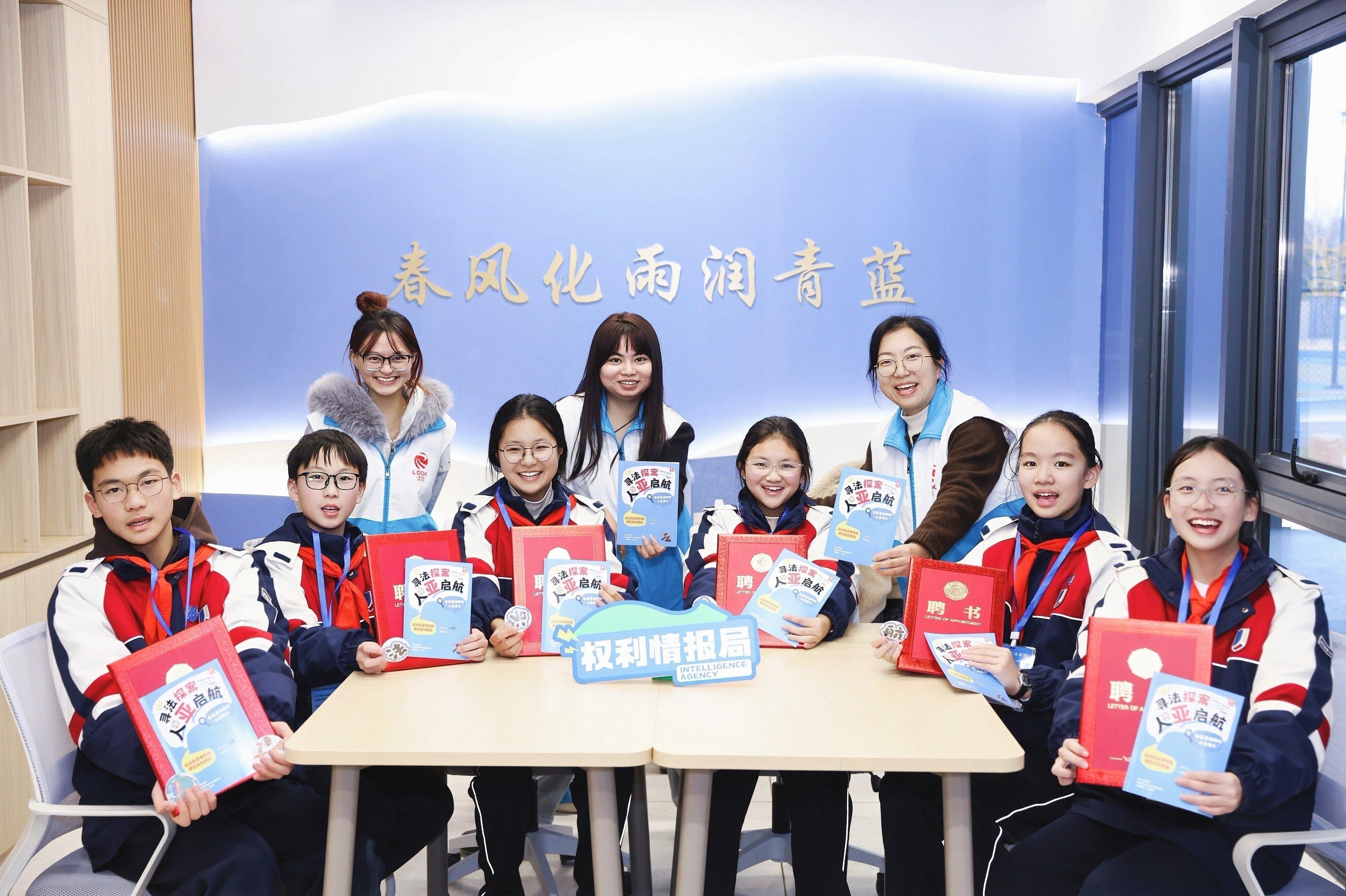 此次法治教育實踐中心落戶人亞學(xué)校,是依法治國和依規(guī)治黨有機統(tǒng)一的生動體現(xiàn)——這所以守護黨章的革命先輩張人亞命名的學(xué)校,不僅是全國法治宣傳教育基地張人亞黨章學(xué)堂的內(nèi)涵延伸,更承載著依規(guī)治黨的精神根脈,讓法治教育與黨章精神在此交匯融合。實踐中心以“法雨無聲潤澤、春風(fēng)有力護航”為核心理念,創(chuàng)新搭建“黨委領(lǐng)導(dǎo)、政府負(fù)責(zé)、社會協(xié)同”的大普法協(xié)同體系,精心打造了雨澤港城展區(qū)、風(fēng)拂人亞展區(qū)以及“法雨春風(fēng)”工作室等特色功能區(qū)域,作為集“知、行、護、創(chuàng)”于一體的法治教育新陣地,尤為值得關(guān)注的是,中心創(chuàng)新構(gòu)建的“法治副校長-法治輔導(dǎo)員-法治委員”組織架構(gòu)體系,直觀展現(xiàn)了北侖區(qū)推動法治教育從“被動聽學(xué)”向“主動踐行”、從“陣地輻射”向“全域覆蓋”延伸的創(chuàng)新實踐,為青少年法治教育注入鮮活動力。