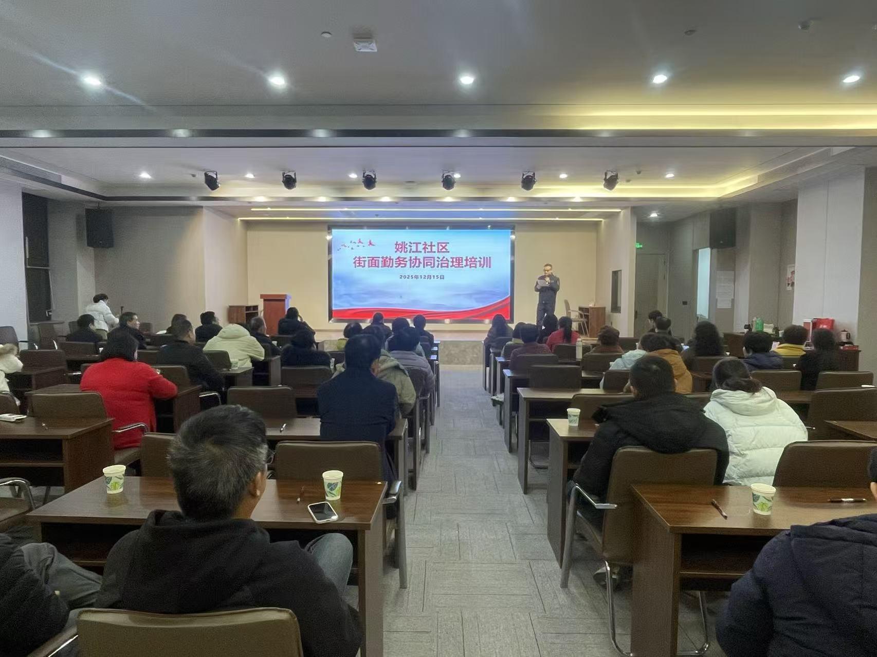 圖為姚江社區(qū)開展街面勤務(wù)協(xié)同治理培訓(xùn)活動