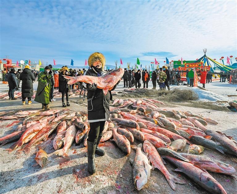 2023年2月16日拍攝的“鏡泊湖冬捕節(jié)”現場。當地把冬捕季活動打造成推動冰雪旅游發(fā)展的重要品牌。 唐偉東攝(中經視覺)