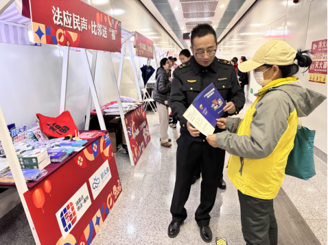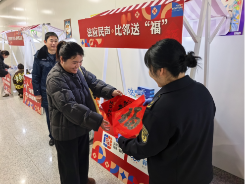 “平安燃情暖萬家,文明養(yǎng)犬睦鄰舍……”近日,在浙江省寧波市鄞州區(qū)下應街道海創(chuàng)社區(qū)寒松路地鐵站通道內(nèi),鄞州區(qū)綜合行政執(zhí)法局下應中隊開展了“法應民生,比鄰送?!逼辗ㄐ麄骰顒印?zhí)法隊隊員現(xiàn)場書寫法治新春對聯(lián)與福字贈予過往群眾,并向群眾開展普法宣傳,將法治寓意于民俗,將關(guān)懷送至群眾身邊。