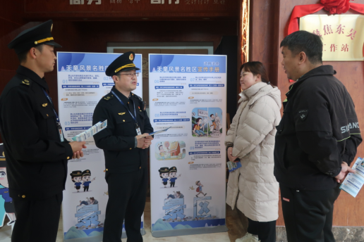 執(zhí)法人員向游客講解景區(qū)管理相關(guān)要求