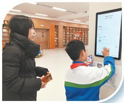 雄安圖書館內(nèi),小學生通過智能書柜檢索圖書。人民網(wǎng)記者 孫博洋攝