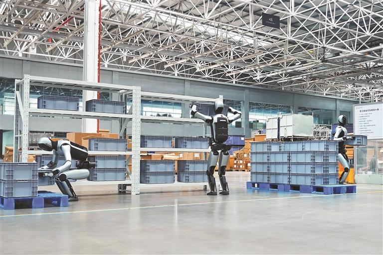 優(yōu)必選工業(yè)人形機(jī)器人在智慧工廠內(nèi)執(zhí)行制造任務(wù)。