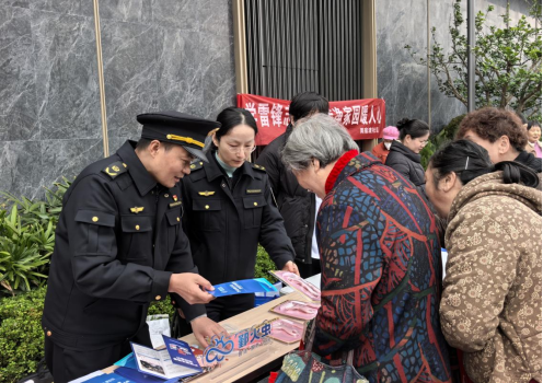 執(zhí)法人員在周宿渡社區(qū)興樾府小區(qū)外設(shè)立便民咨詢臺,圍繞文明裝修、文明養(yǎng)犬、垃圾分類、市容環(huán)境等社區(qū)熱點(diǎn)問題向過往群眾開展普法宣傳。“小區(qū)樹木屬于公共財(cái)產(chǎn),不可私自砍伐”“房屋裝修產(chǎn)生的垃圾需交給有資質(zhì)的單位清運(yùn)”……面對居民的提問,執(zhí)法人員郭鵬飛耐心地一一講解,引導(dǎo)群眾自覺遵守法律法規(guī),現(xiàn)場共發(fā)放宣傳資料80余份。