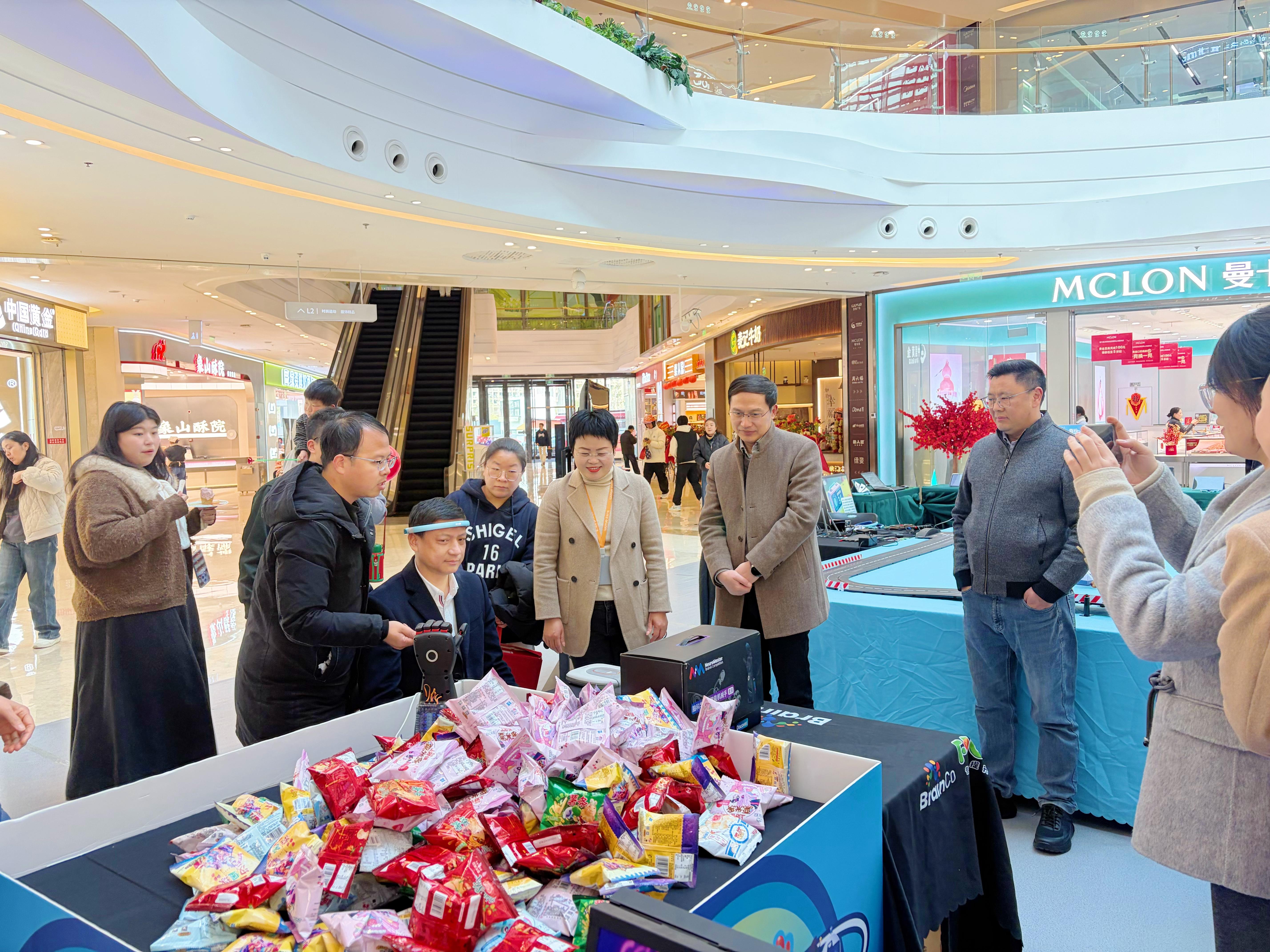 科技賦能消費(fèi)體驗(yàn)是本次嘉年華的一大特色?;顒?dòng)期間,科技互動(dòng)專區(qū)持續(xù)開(kāi)放,腦控賽車、腦控爆米花、智能機(jī)械手等13項(xiàng)“腦動(dòng)科技”項(xiàng)目吸引眾多市民參與,啟動(dòng)當(dāng)日更有機(jī)器人、機(jī)器狗現(xiàn)場(chǎng)互動(dòng)合影,讓參與者在感受“意念控制”魅力的同時(shí),直觀體會(huì)“科技讓消費(fèi)更美好”的內(nèi)涵。