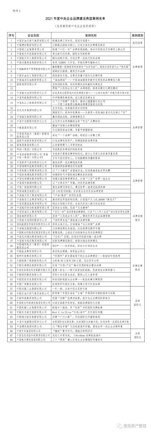 為深入貫徹習(xí)近平總書記關(guān)于品牌建設(shè)的重要指示精神,落實(shí)黨中央、國(guó)務(wù)院關(guān)于加強(qiáng)品牌建設(shè)的部署要求,指導(dǎo)推動(dòng)中央企業(yè)講好品牌故事,不斷提高品牌建設(shè)工作水平,國(guó)資委社會(huì)責(zé)任局于2021年11月組織開展了2021年度國(guó)有企業(yè)品牌建設(shè)實(shí)踐案例和品牌故事征集工作,中央企業(yè)和地方國(guó)資國(guó)企積極組織、踴躍參與,共報(bào)送了492個(gè)品牌建設(shè)實(shí)踐案例、634個(gè)品牌故事作品。經(jīng)評(píng)審,最終遴選出具有良好示范效應(yīng)和學(xué)習(xí)借鑒意義的100個(gè)典型案例和100個(gè)優(yōu)秀品牌故事(詳見附件)。
