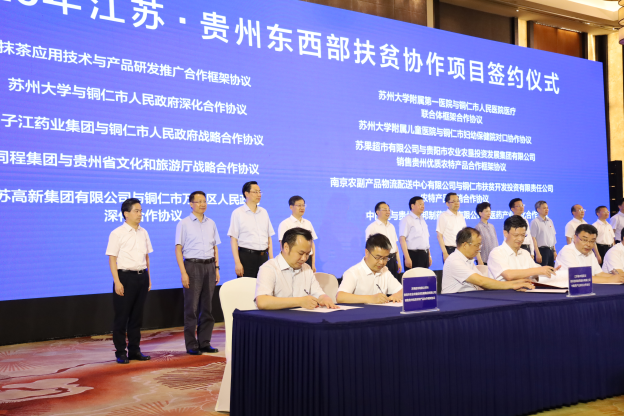 2020年8月,在江蘇·貴州東西部扶貧協(xié)作項目簽約儀式上,華潤蘇果與貴陽市農業(yè)農墾投資發(fā)展集團簽署了《銷售貴州優(yōu)質農特產品合作框架協(xié)議》。華潤蘇果為貴州優(yōu)質農特產品優(yōu)先提供銷售平臺、開辟綠色通道,幫助貴州銷售包括果蔬、豬肉、牛肉、禽類、蛋類及地域特產(含國家地理標志產品)等貨品;雙方將共同關注貴州省銅仁市、畢節(jié)市農特產品引進與銷售,支持江蘇省對口援建貧困地區(qū)農特產品銷售工作;雙方建立專班團隊對接,建立合作重大問題和業(yè)務日常事務有效溝通機制,及時充分開展業(yè)務交流與合作探討。