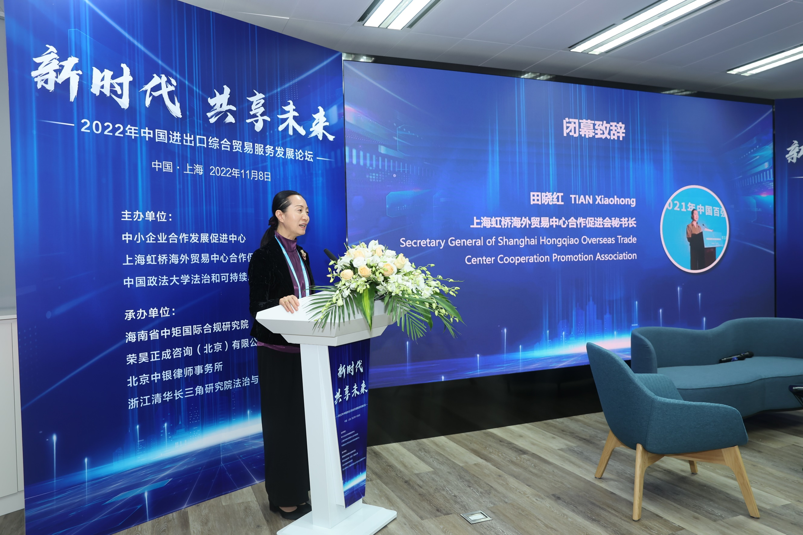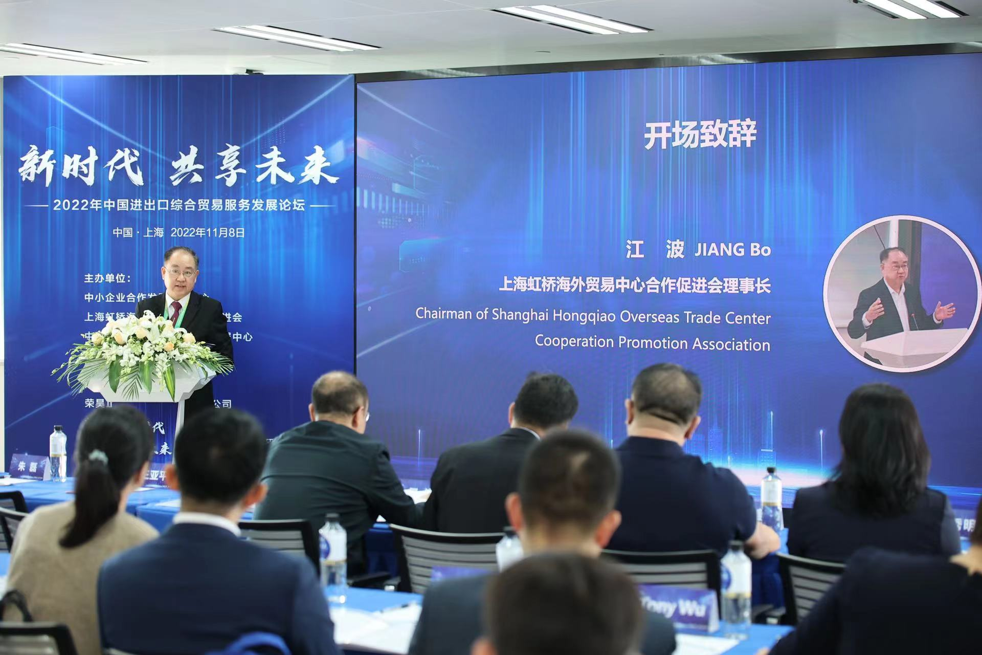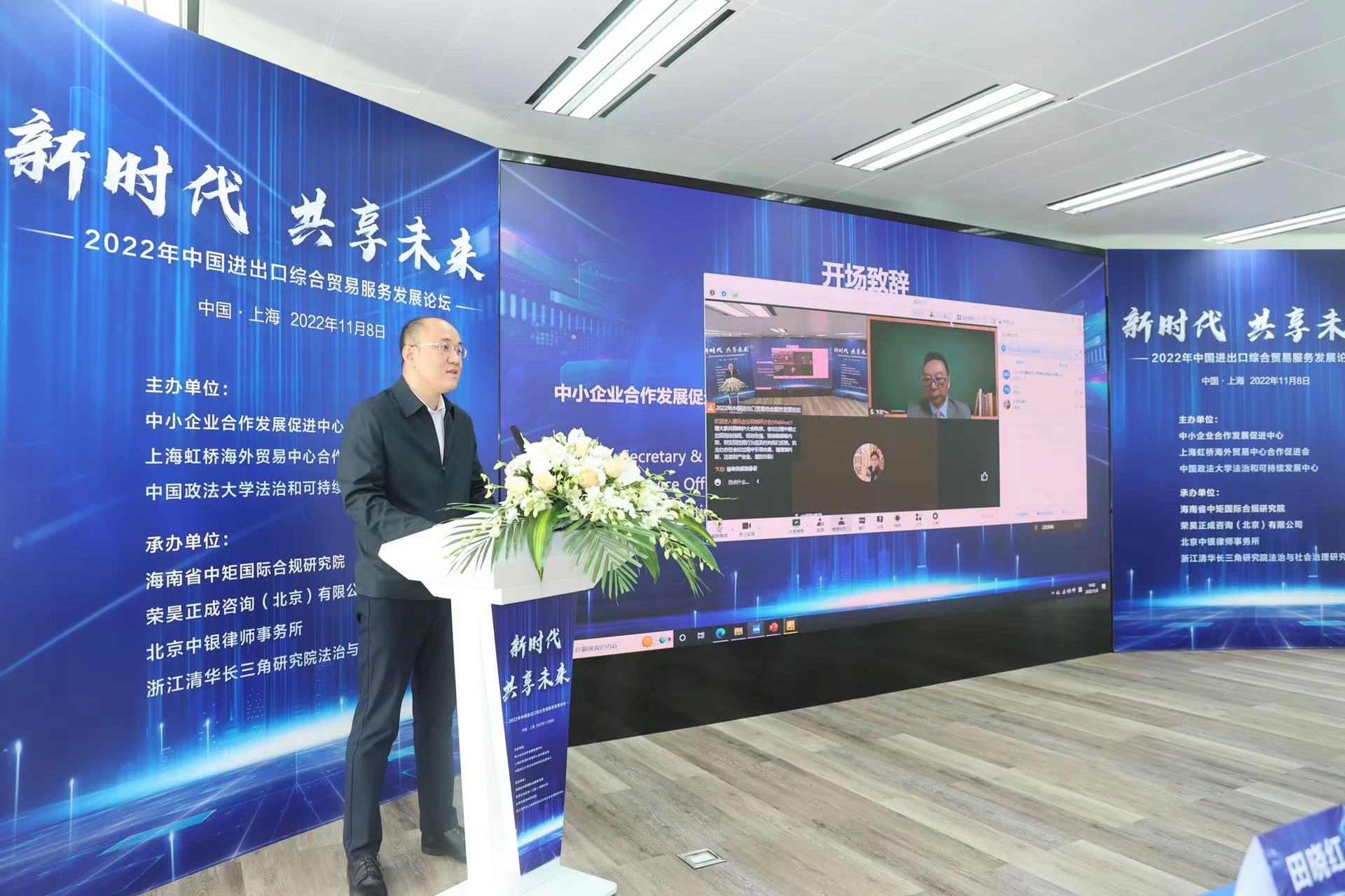 2022年11月8日,由中小企業(yè)合作發(fā)展促進中心、上海虹橋海外貿(mào)易中心合作促進會、中國政法大學(xué)法治與可持續(xù)發(fā)展中心共同主辦的“2022年中國進出口綜合貿(mào)易服務(wù)發(fā)展論壇”在上海虹橋海外貿(mào)易中心隆重舉行,政府領(lǐng)導(dǎo)、專家學(xué)者、企業(yè)代表共同探討綜合貿(mào)易服務(wù)變化及貿(mào)易合規(guī)挑戰(zhàn)。