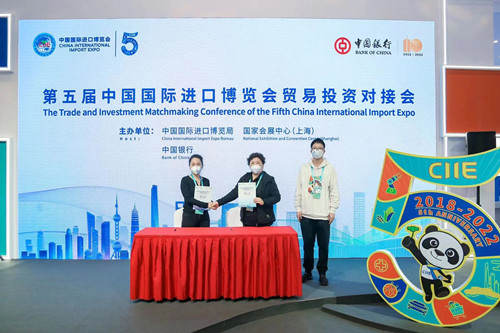 11月6日,第五屆進(jìn)口博覽會貿(mào)易對接會剛剛開幕,江蘇中行客戶S集團(tuán)即與日本三家跨國公司展商簽訂了合計約1.5億美元的合作意向。S集團(tuán)高度評價中行的跨境金融服務(wù),并強(qiáng)調(diào)未來將深入放大進(jìn)博會平臺“溢出效用”,與境外展商持續(xù)加強(qiáng)信息交流與資源集成,打造雙贏、可持續(xù)發(fā)展的全面戰(zhàn)略合作伙伴關(guān)系,助力中國廠商不斷提升“智造”競爭力。