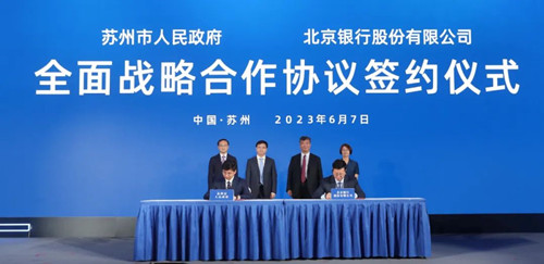 6月7日,蘇州市政府與北京銀行簽署全面戰(zhàn)略合作協(xié)議,北京銀行蘇州分行、數(shù)字人民幣創(chuàng)新實驗室同步揭牌。江蘇省委常委、蘇州市委書記曹路寶,北京銀行黨委書記、董事長霍學文出席活動。