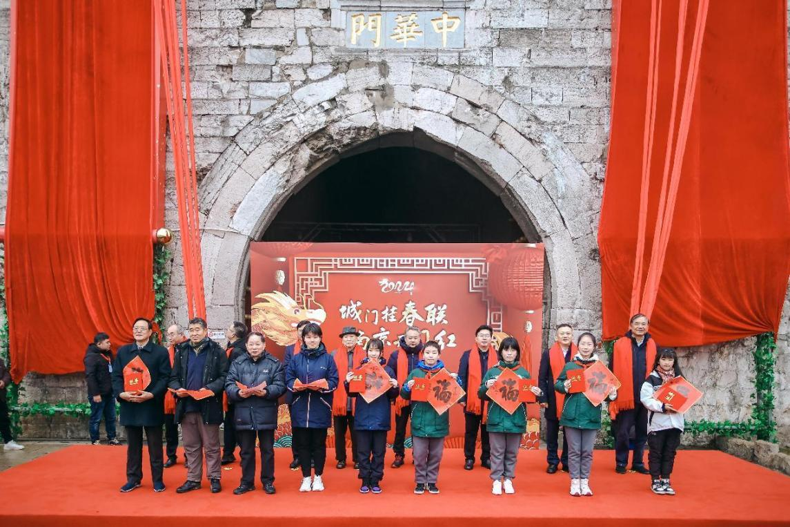 1月21日上午,由中共南京市委宣傳部、南京市文化和旅游局、新華報業(yè)傳媒集團(tuán)、中國銀行江蘇省分行聯(lián)合主辦的2024年“城門掛春聯(lián),南京開門紅”揭聯(lián)儀式在中華門隆重舉行。南京市委常委、宣傳部部長陳勇,新華日報社黨委書記、社長雙傳學(xué),南京市文化和旅游局黨委書記、局長謝國慶,中國銀行江蘇省分行資深業(yè)務(wù)經(jīng)理兼南京分行行長陳新宏,新華日報社黨委委員、副總編輯鄭澤云,江蘇省楹聯(lián)研究會會長周游,江蘇省書法家協(xié)會副主席兼秘書長劉燦銘等出席揭聯(lián)儀式。