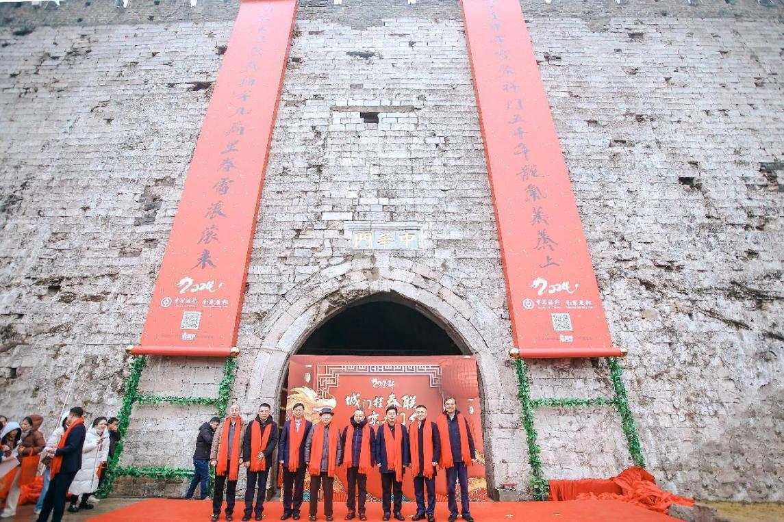“夢逐中華,寶聚祥門,五千年龍氣蒸蒸上;鶯歌大地,燕裁福字,九萬里春雷滾滾來?!币桓遍L達(dá)十五米、寬兩米的巨幅大紅春聯(lián),又一次在江蘇省南京市中華門甕城震撼亮相,拉開了龍年序幕。