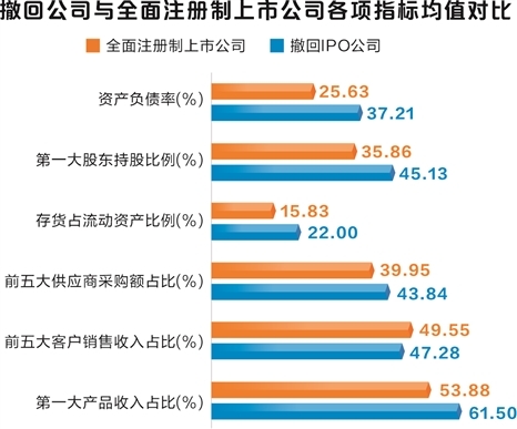 2.前五大客戶(供應(yīng)商)依賴度過高。撤回IPO公司前五大客戶收入占比平均為47.28%,雖略低于注冊制公司的49.55%,但從單家公司來看,占比超過80%的公司中,撤回IPO公司數(shù)量占比超過15%,注冊制公司數(shù)量占比10%左右。