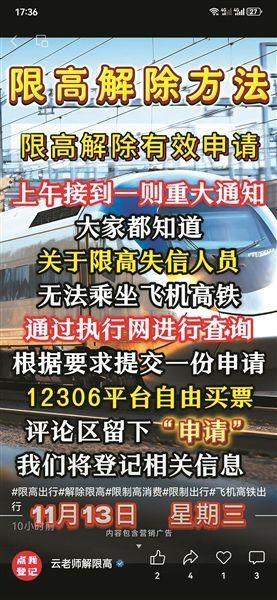 個別律所認證賬號發(fā)作品 稱提供解除“限高”服務