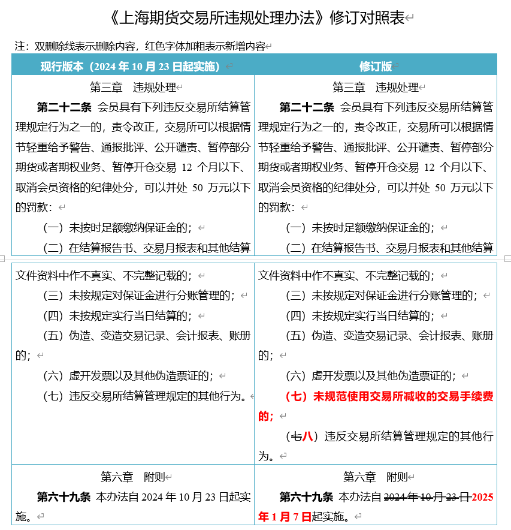 上海期貨交易所1月7日也發(fā)布公告稱,《上海期貨交易所結(jié)算管理辦法(修訂版)》《上海期貨交易所違規(guī)處理辦法(修訂版)》經(jīng)上期所理事會審議通過,并已報告中國證監(jiān)會,現(xiàn)予以發(fā)布,自2025年1月7日起實施。