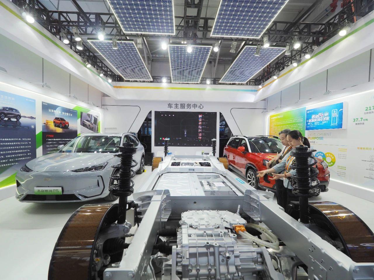 ▲2024年服貿(mào)會供應鏈及商務服務專題展上,觀眾在參觀新能源汽車彈電池系統(tǒng)。CFP
