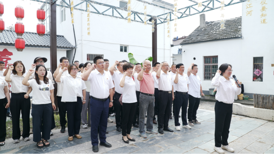 紅色“騎”跡,不僅是一次地理上的追尋,更是一次深刻的精神回溯?;顒幼詈?,在場全體黨員莊嚴重溫入黨誓詞,鏗鏘誓言在研學館外回響,彰顯了六郎鎮(zhèn)黨員干部賡續(xù)紅色血脈、永葆政治本色的堅定決心。