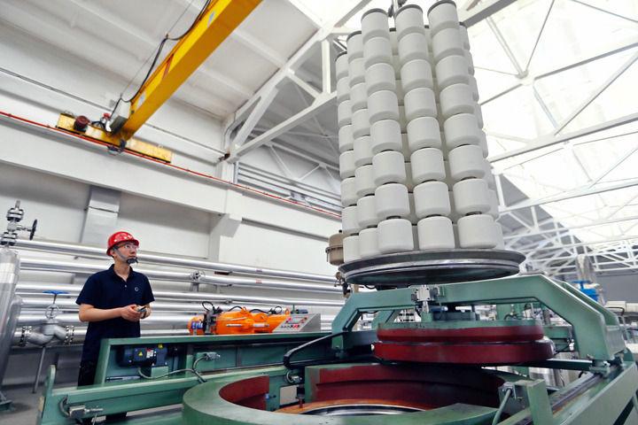 2025年6月20日,在青島市即墨區(qū)即發(fā)集團(tuán)股份有限公司超臨界二氧化碳無水染色生產(chǎn)線上,工人將一批待染的聚酯纖維筒子紗裝入染缸。新華社發(fā)(梁孝鵬攝)