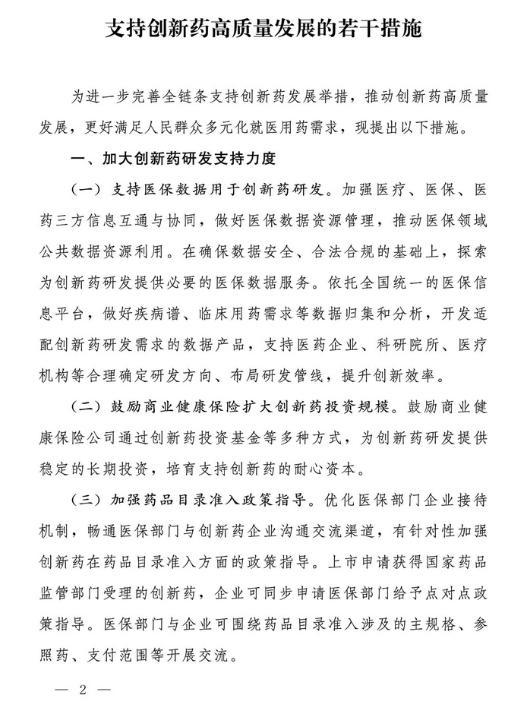 以下為《支持創(chuàng)新藥高質量發(fā)展的若干措施》全文:
