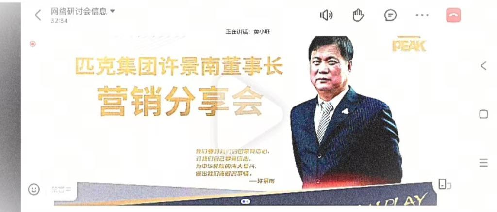 多位員工介紹,9月17日上午的分享會(huì),對(duì)外通知為關(guān)于三觀培訓(xùn)和加強(qiáng)內(nèi)控管理。主講人為董事長許景南,參會(huì)人員顯示為公司各單位主管級(jí)及以上人員、生產(chǎn)公司車間主任級(jí)及以上人員必須現(xiàn)場參加,也歡迎其他員工在合理安排工作下積極參與。談及管理分享會(huì),多位員工表示,內(nèi)部稱之為“三觀培訓(xùn)會(huì)”,匹克通常一周到兩周開一次,由董事長一個(gè)人主講,一般要求管理人員參加,在總部的現(xiàn)場參加,外地的線上參會(huì),開會(huì)時(shí)長基本為半天。