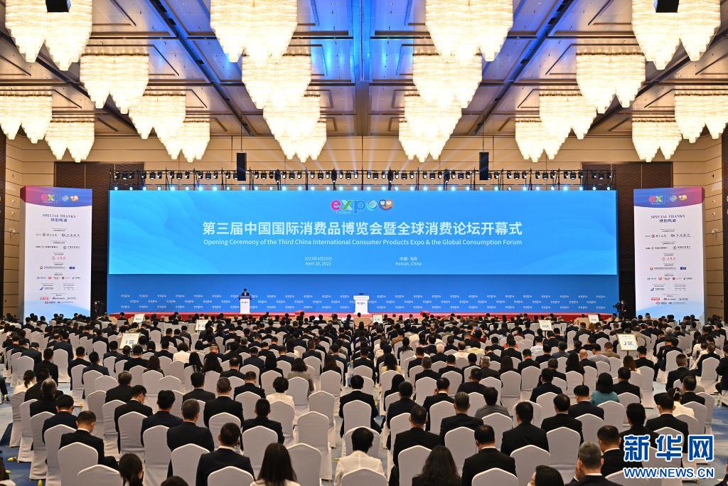 第三屆中國(guó)國(guó)際消費(fèi)品博覽會(huì)開(kāi)幕,這是4月10日拍攝的開(kāi)幕式現(xiàn)場(chǎng)。當(dāng)日,第三屆中國(guó)國(guó)際消費(fèi)品博覽會(huì)在海南??陂_(kāi)幕。本屆消博會(huì)以“共享開(kāi)放機(jī)遇、共創(chuàng)美好生活”為主題,將助力消費(fèi)恢復(fù)和升級(jí),為各國(guó)企業(yè)共享中國(guó)市場(chǎng)提供機(jī)遇。新華社記者 李鑫 攝