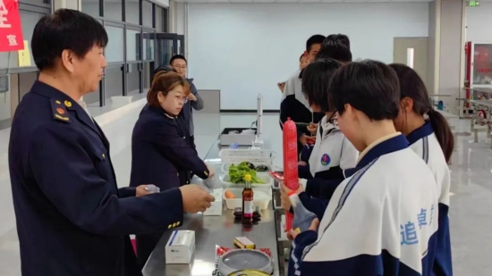 活動(dòng)現(xiàn)場(chǎng),尚義縣市場(chǎng)監(jiān)督管理局工作人員設(shè)立快速檢測(cè)服務(wù)臺(tái),演示“你點(diǎn)我檢,你送我檢”快檢方式,現(xiàn)場(chǎng)按照食品安全監(jiān)督抽檢程序要求,對(duì)食堂的蔬菜、肉類(lèi)、調(diào)料等開(kāi)展快檢。