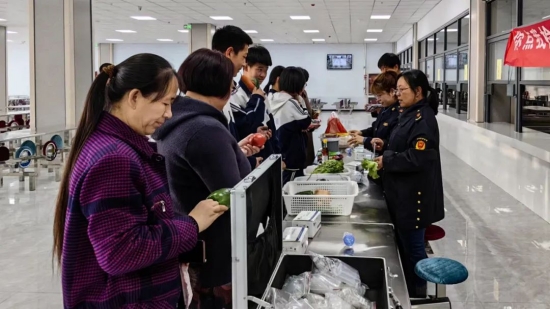 活動(dòng)現(xiàn)場(chǎng),工作人員正在對(duì)蔬菜進(jìn)行檢測(cè)。張曉杰攝