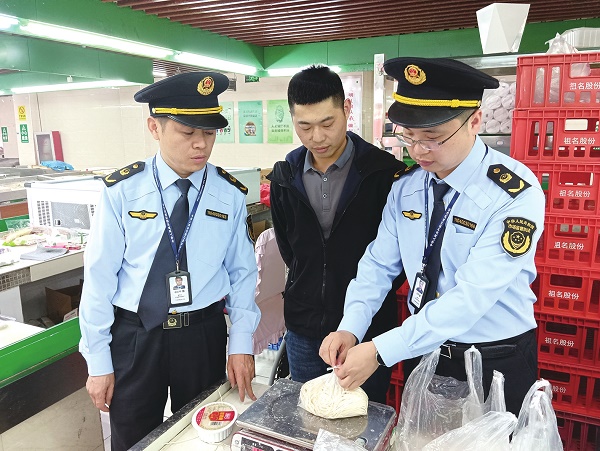 圖為該局執(zhí)法人員在一家超市對鮮面條進行抽樣。孫建新 金聰 文/攝