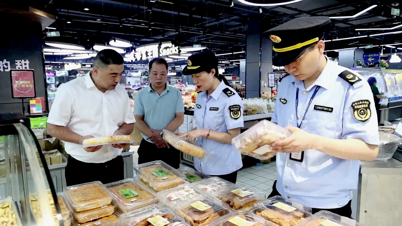 在潁東區(qū)某商超,當(dāng)?shù)厥袌霰O(jiān)督管理部門組織的執(zhí)法人員正在對乳制品、肉制品、海鮮和果蔬等食品進(jìn)行抽查,督促企業(yè)落實(shí)食品安全主體責(zé)任?!拔覀兗訌?qiáng)對供應(yīng)商的評估和考核,只選擇有資質(zhì),信用良好的供應(yīng)商合作,加強(qiáng)對產(chǎn)品質(zhì)量的檢驗(yàn),確保食品的新鮮度和安全線?!蹦成坛?fù)責(zé)人胡德明表示。