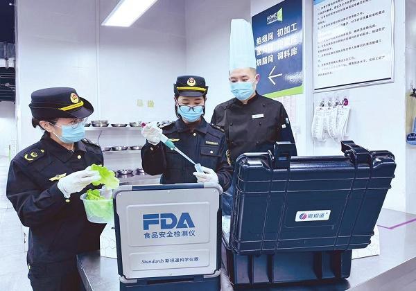 圖為10月24日,該局執(zhí)法人員在某酒店抽樣并快檢蔬菜水果等。梁小衛(wèi) 攝