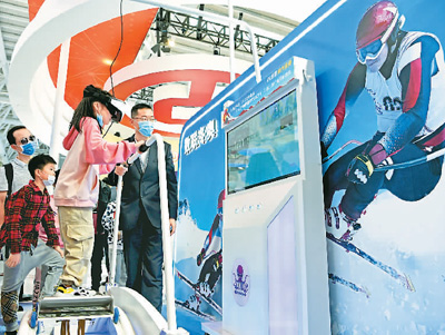日前,福建省福州市馬尾區(qū)魁岐小學二年級學生在第四屆數(shù)字中國建設峰會數(shù)字成果展覽會上通過VR設備體驗冬奧滑雪項目。 |