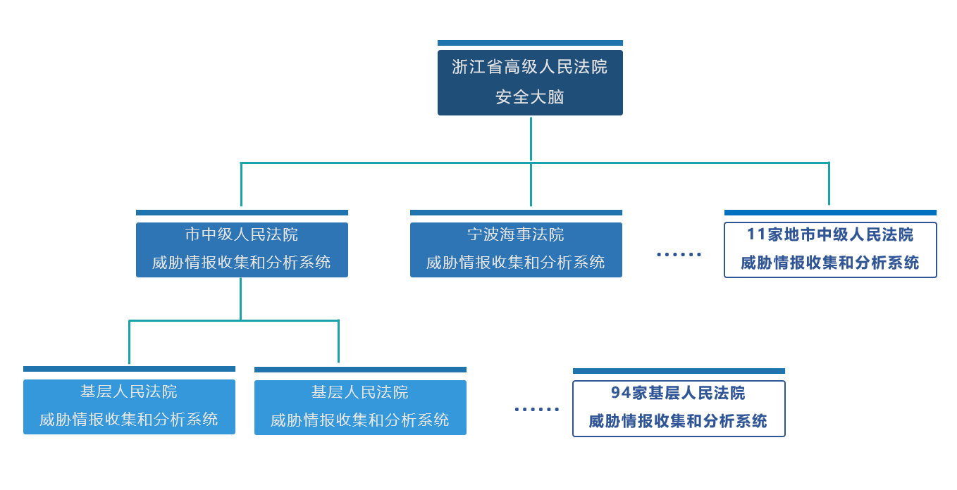 為了給“全域數(shù)字法院”構(gòu)筑全局、主動(dòng)的網(wǎng)絡(luò)安全體系化防護(hù),保障數(shù)字化改革的順利推進(jìn),浙江高院聚焦法院網(wǎng)絡(luò)基礎(chǔ)設(shè)施和信息系統(tǒng)建設(shè)、運(yùn)行、維護(hù)、使用的安全管理,進(jìn)一步強(qiáng)化制度建設(shè),出臺(tái)《浙江法院網(wǎng)絡(luò)安全管理辦法(試行)》及相關(guān)技術(shù)規(guī)范,建立健全了網(wǎng)絡(luò)安全測評、應(yīng)急處置、檢查通報(bào)等機(jī)制。同時(shí),沿著“架構(gòu)安全——被動(dòng)防御——積極防御——威脅情報(bào)”的建設(shè)路徑,浙江高院依托威脅情報(bào)和大數(shù)據(jù)技術(shù),開展了安全大腦的建設(shè),形成了初級威脅可防御、高級威脅可監(jiān)測的動(dòng)態(tài)安全能力,并兼顧防御、檢測、響應(yīng)和預(yù)防四個(gè)方面,安全能力有了質(zhì)的飛躍。