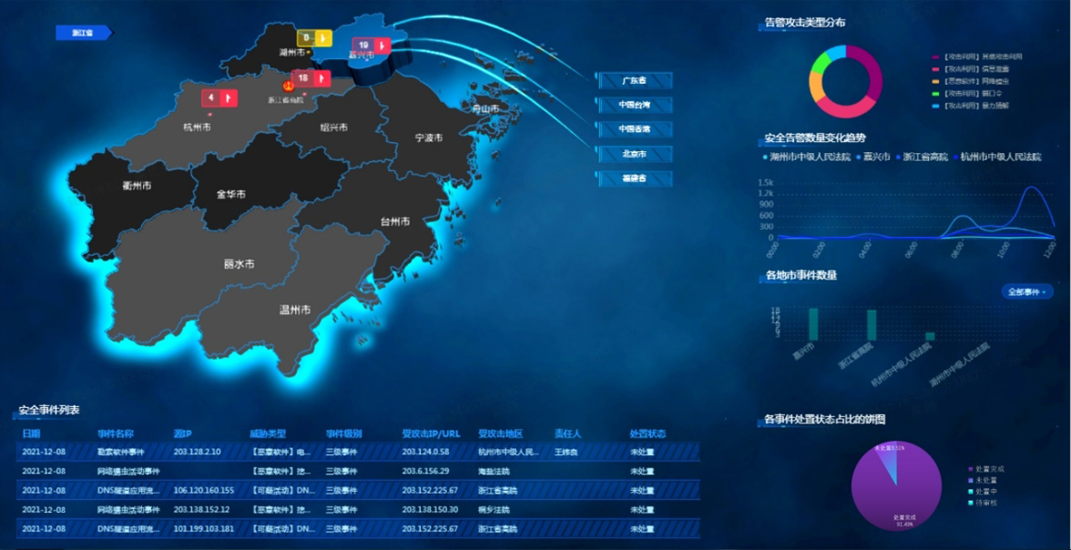 2021年,在省網(wǎng)信辦、公安廳牽頭的攻防實(shí)戰(zhàn)演習(xí)中,浙江高院不僅確保了防守目標(biāo)“零失陷”,在及早發(fā)現(xiàn)攻擊行為、快速溯源分析、及時(shí)響應(yīng)處置等主動(dòng)防御層面也有較好表現(xiàn)。