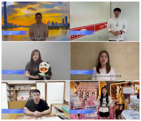 會(huì)上,來自淘寶直播、京東、快手、得物等互聯(lián)網(wǎng)電商平臺(tái)代表以及來自遙望科技、嘉星集團(tuán)的MCN機(jī)構(gòu)代表通過視頻為2024未來電商節(jié)送上了祝福寄語。
