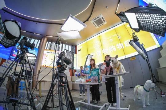 ▲互聯(lián)網(wǎng)營銷師培訓(xùn)機(jī)構(gòu)水平參差不齊。圖為浙江省平陽縣寵物小鎮(zhèn)客廳內(nèi),眾多主播直播帶貨。 CFP