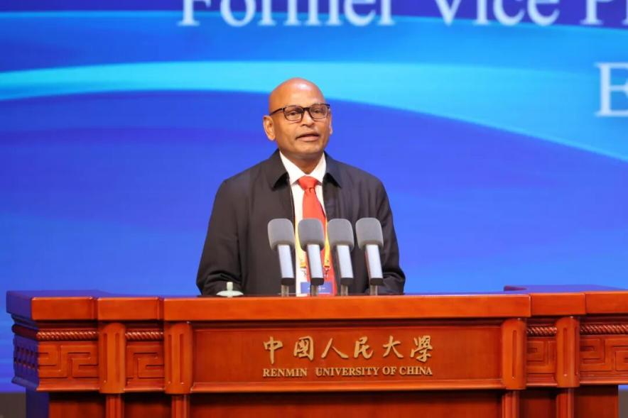 圖為中國人民大學(xué)黨委書記張東剛在開幕式致辭。