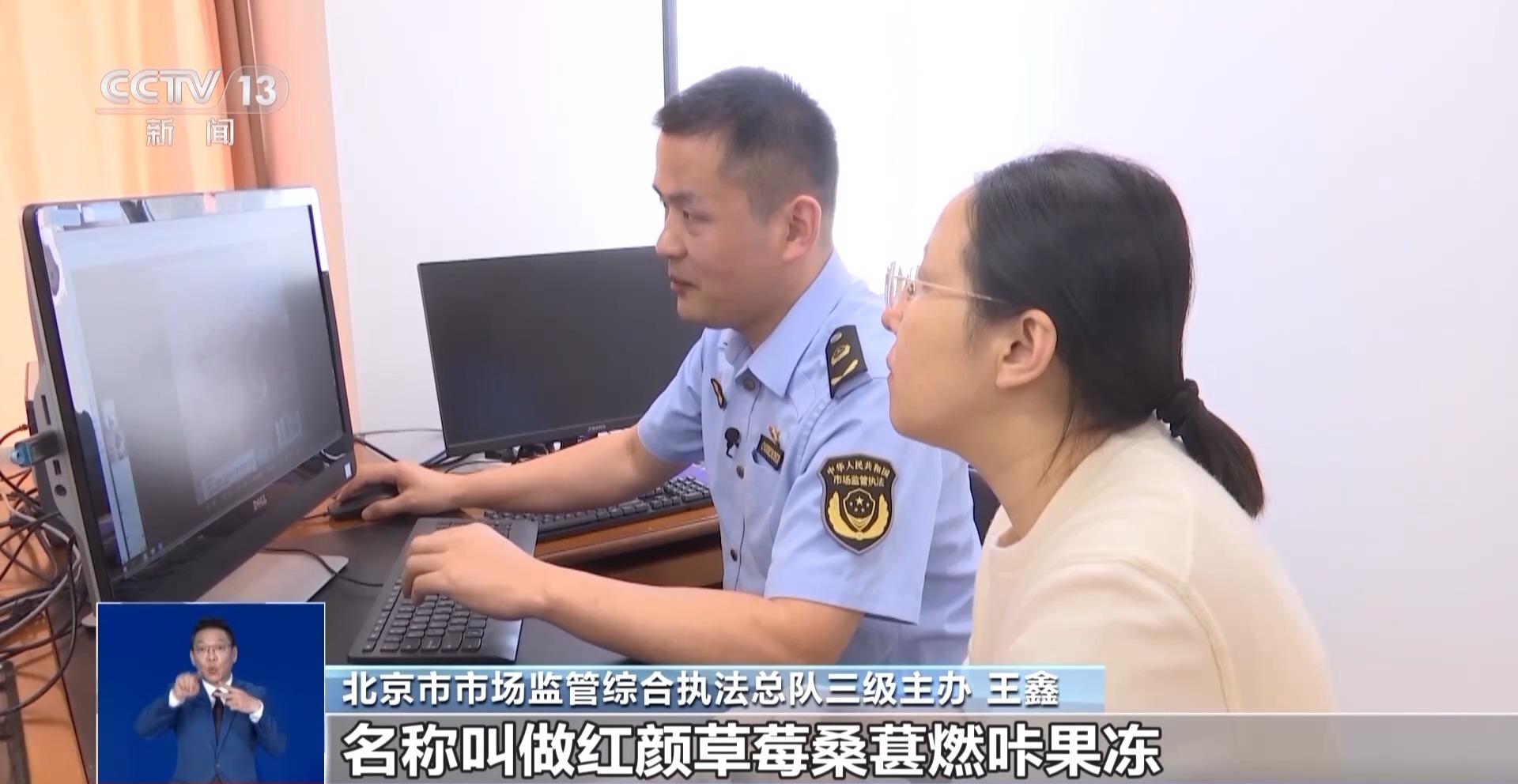 北京市市場監(jiān)管綜合執(zhí)法總隊三級主辦 王鑫:我們可以看到這款產(chǎn)品的名稱叫作紅顏草莓桑葚燃咔果凍,它有食品生產(chǎn)許可證的編號,沒有保健食品的藍(lán)帽子標(biāo)志,也沒有藥品的生產(chǎn)許可證,它只是一款普通的食品。