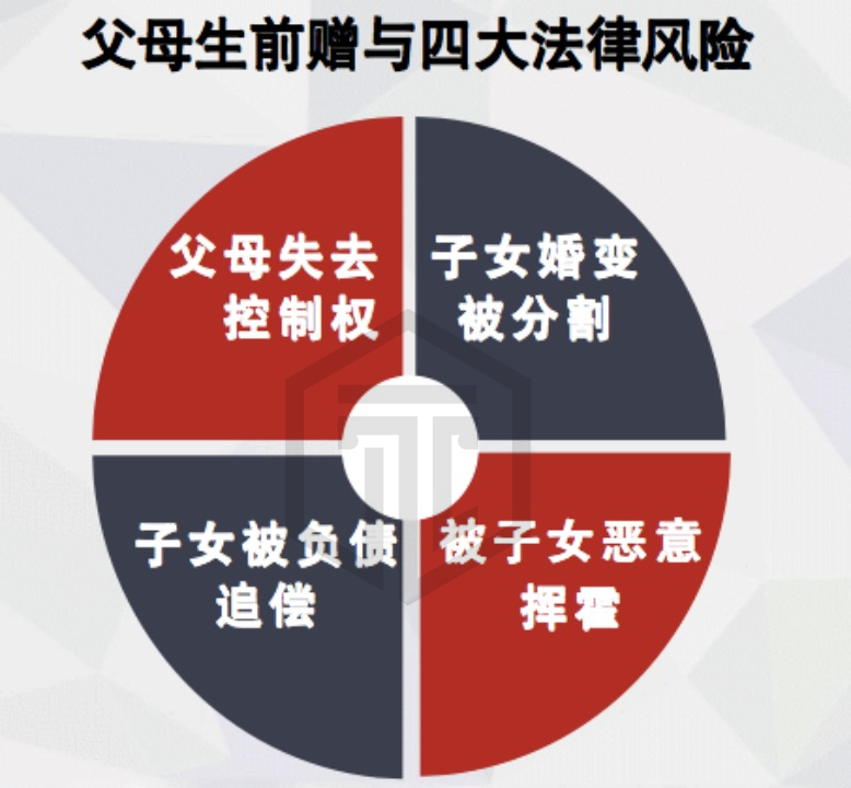 但從財富傳承角度來看,贈與也同樣存在著缺陷。一旦贈與行為完成,傳承人會失去對財產(chǎn)的控制,若受贈人不孝或不盡贍養(yǎng)義務(wù)、發(fā)生婚變、缺乏駕馭財產(chǎn)的能力、對外負(fù)債或隨意揮霍財產(chǎn),都可能導(dǎo)致財產(chǎn)的流失。