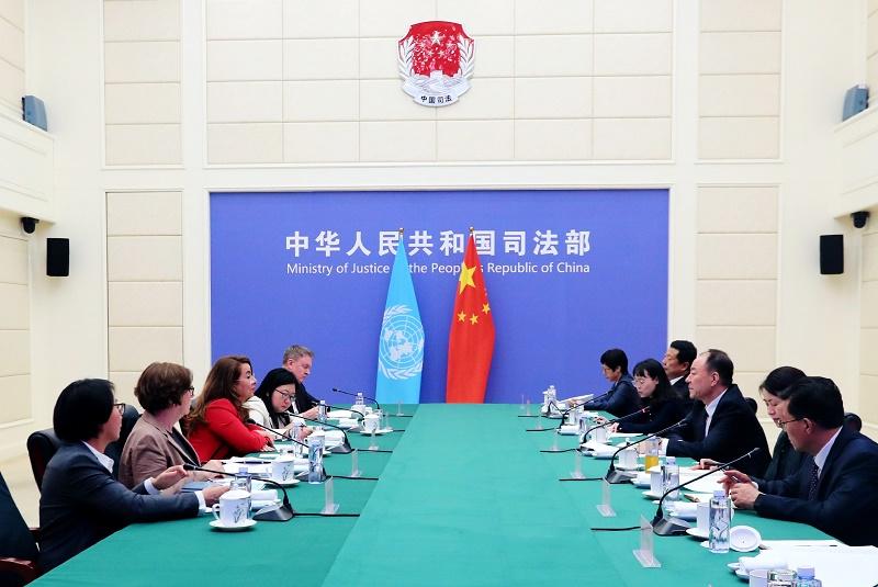 司法部部長賀榮在京會見聯(lián)合國維也納辦事處總干事兼聯(lián)合國毒罪辦執(zhí)行主任瓦利一行。