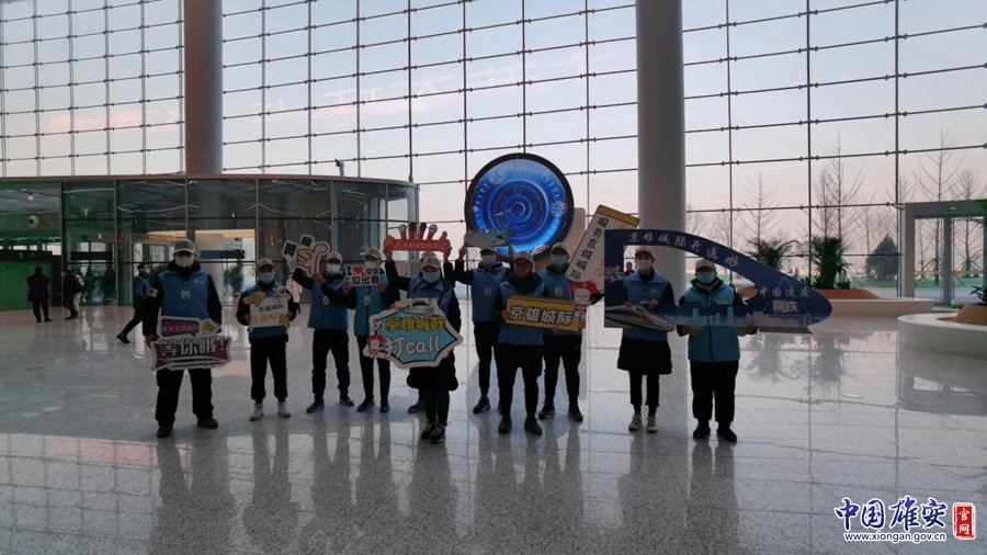 12月27日,志愿者在雄安站迎接旅客進(jìn)站。劉東堯 攝