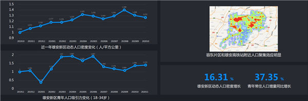 通過《報告》可以看出,雄安新區(qū)對青年人口的吸引力在持續(xù)提升。2020 年11月,雄安青年常住人口較2019 年同期增長了37.35%。越來越多的青年人來到雄安,為雄安注入了活力。