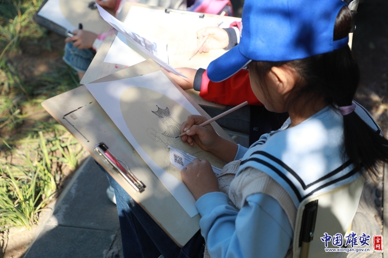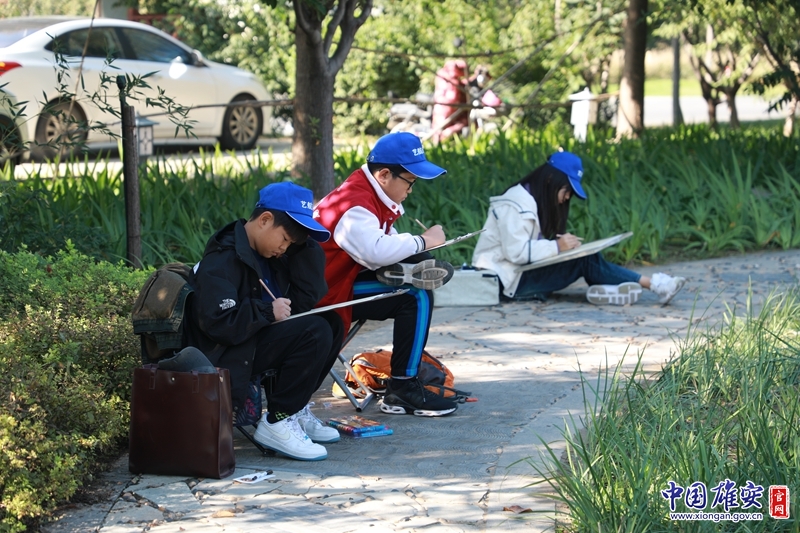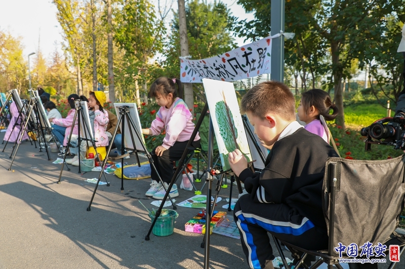 孩子們在細心描繪心中的美景。雄安郊野公園供圖