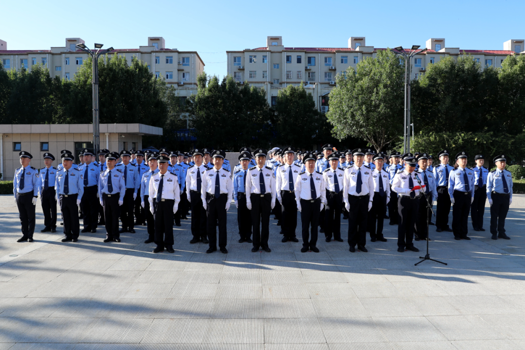 伴隨著雄壯的中華人民共和國國歌,鮮艷的五星紅旗冉冉升起,在蔚藍(lán)的天空中迎風(fēng)飄揚(yáng)。全體民輔警精神抖擻、英姿勃發(fā),面向國旗莊嚴(yán)敬禮,表達(dá)對(duì)黨的無限忠誠和對(duì)祖國的誠摯祝福。
