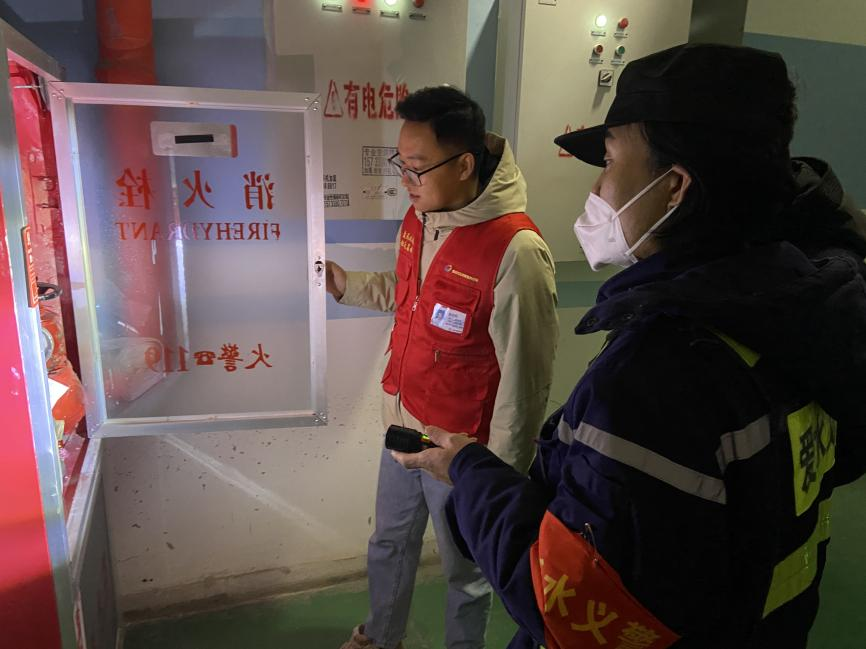 義警安育松(左一)與同事一起排查安全隱患