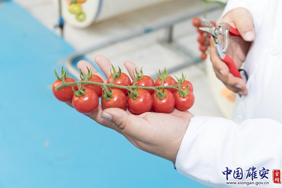 科技園的工作人員正在檢查番茄成熟度。中國雄安官網(wǎng)李鑫 攝