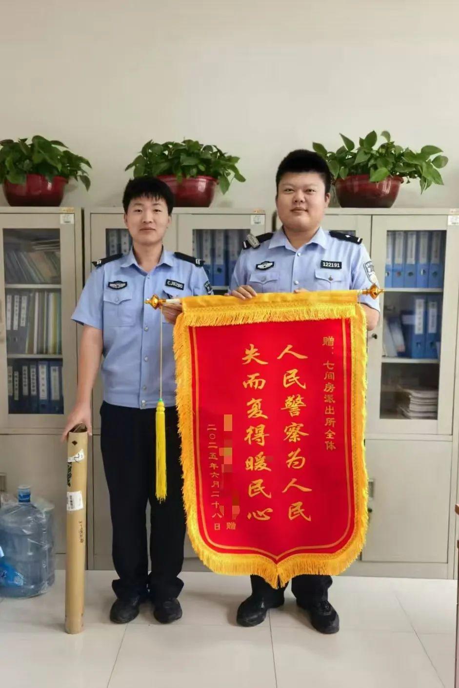 6月29日上午,李大哥帶著一面鮮紅的錦旗再次來到派出所?!叭嗣窬鞛槿嗣?失而復(fù)得暖民心”十六個金黃大字在陽光下格外耀眼。李大哥緊緊握住民警的手:“要不是你們,我們這輩子可能都見不到了!這八年來家里從沒過過一個安穩(wěn)年,是你們讓我們?nèi)覉F(tuán)圓,這份恩情我們記一輩子!”