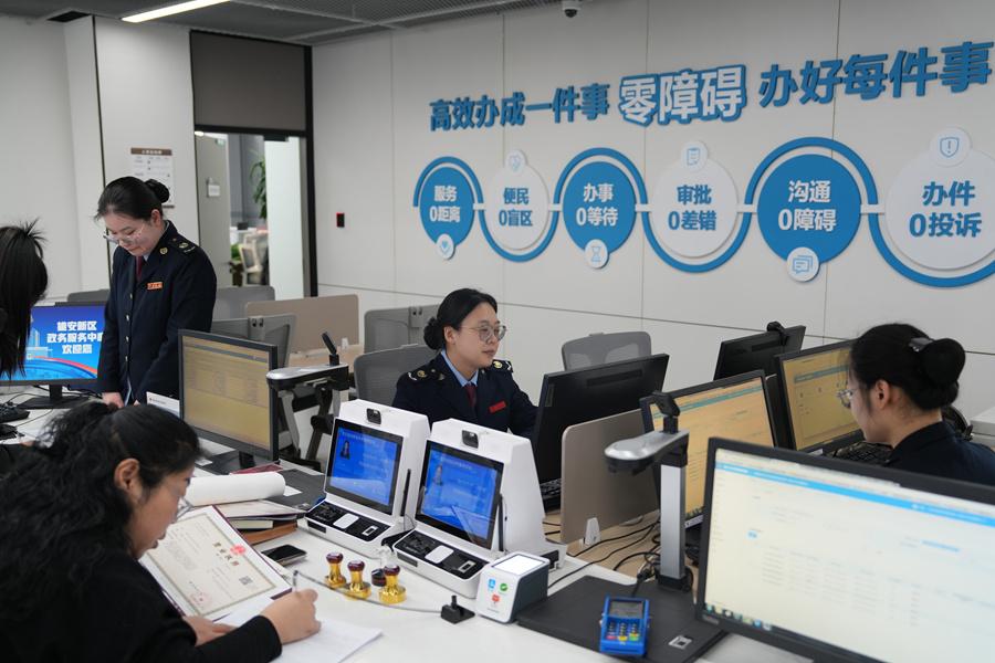 企業(yè)群眾在雄安新區(qū)政務(wù)服務(wù)中心便捷辦事。雄安新區(qū)政務(wù)服務(wù)中心供圖