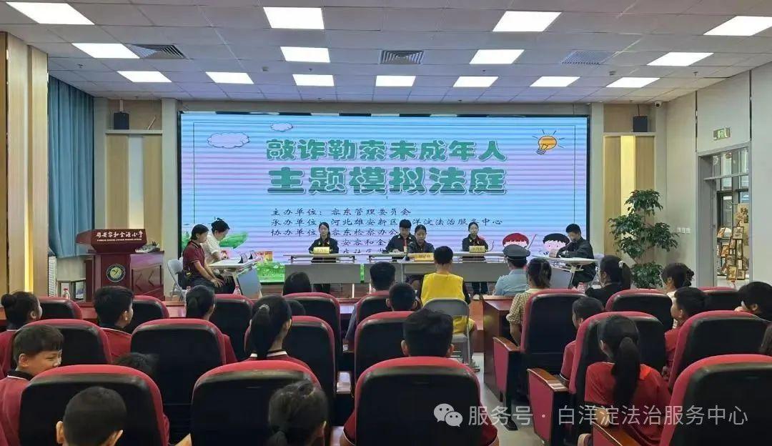 2025年8月8日,容東片區(qū)第三場模擬法庭在容和金源小學(xué)舉辦。參演的學(xué)生分別扮演審判長,陪審員,公訴人,辯護(hù)人,被告等角色,通過法庭調(diào)查,舉證質(zhì)證,法庭辯論,最后陳述等環(huán)節(jié),生動(dòng)還原了一場以敲詐勒索未成年人為主題的庭審活動(dòng)。