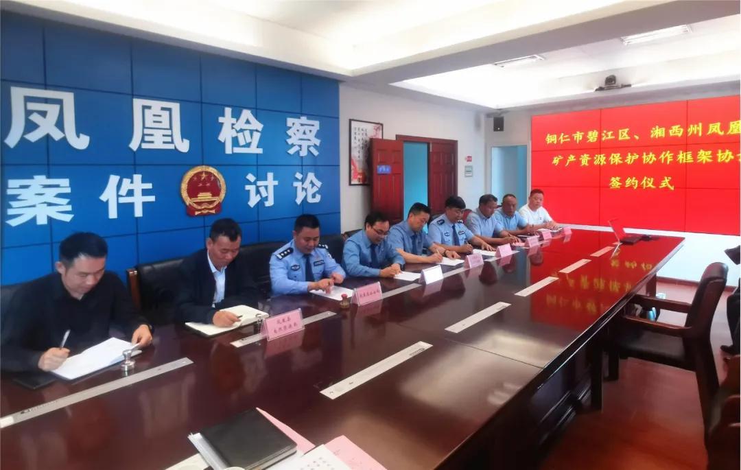 為有效針對跨區(qū)域難以有效打擊盜采礦產(chǎn)資源違法行為,破解行政機關(guān)“單打獨斗”“交界難管”局面。5月9日,碧江區(qū)檢察院聯(lián)合湖南省懷化市鳳凰縣檢察院等兩地8部門簽訂《碧江區(qū)、鳳凰縣礦產(chǎn)資源保護協(xié)作框架協(xié)議(試行)》,對協(xié)作原則及范圍、協(xié)作方式等進(jìn)行了明確的規(guī)定,建立溝通聯(lián)絡(luò)、信息共享、案件移送、重大案件跨區(qū)域辦理等8個協(xié)同機制。通過發(fā)揮各自職能,加強跨區(qū)域協(xié)作,共同化解礦產(chǎn)資源保護中區(qū)域分割的困難,推動形成礦產(chǎn)資源跨區(qū)域司法保護合力。